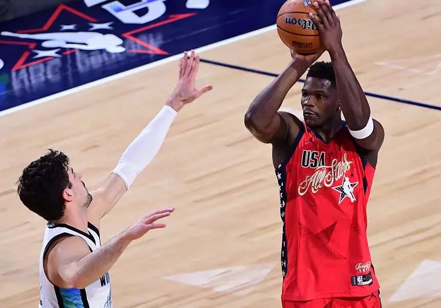而这场比赛布克率先命中三分,马克西上篮得分后伦纳德罚球2中1,随后新星队打出一波7-0,詹姆斯扣篮得分后马克西、杜伦频频在内线得分,詹姆斯命中三分后杜伦完成补扣,布伦森命中三分后爱德华兹连得8分,约翰逊命中三分后布朗上篮得分,巴恩斯扣篮得分后布朗上篮得分止血,霍姆格伦完成补扣后米切尔命中三分,霍姆格伦罚球得分后米切尔继续命中三分,福克斯上篮得分后霍姆格伦命中三分,接下来新星队牢牢占据领先,最终新星队以47-21大胜星条队,这样新星队获得了冠军。