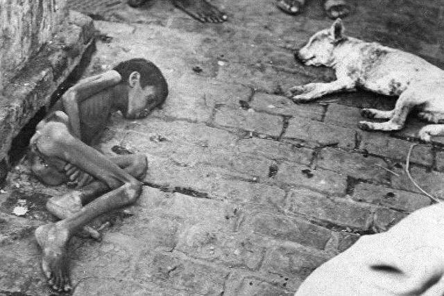 最冷血的是1943年的孟加拉饥荒,那一年风调雨顺,粮食本来是丰收的,可英国人因为要打二战,强行没收农民的牛车、船只,切断运粮通道,把粮食全征用给英军,还把救济粮转道运到欧洲。
