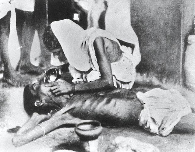 当时的英国首相丘吉尔,甚至冷血地说“印度人会像兔子一样繁殖”,根本不在乎他们的死活,这次饥荒又饿死了300多万人,幸存者只能啃树皮、吃野草,惨不忍睹。
